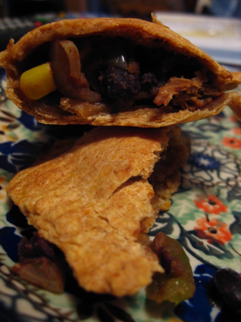 I used the rest of my can of black beans, mixed peppers, corn, and veggie steak strips in my empanadas.