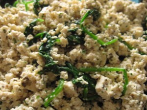 • Crumble together until completely mixed and no large chunks are left. Use your hands! Massage that tofu!