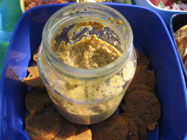 Because it does make so much mustard, I brought some to a picnic to share with friends. We ate it with sesame crackers and fresh seitan slices; others slathered it on some bread rolls. It was a big hit! And everyone thought I was so damn cool for making it; little did they know. Now all lazy bones can be awesome!