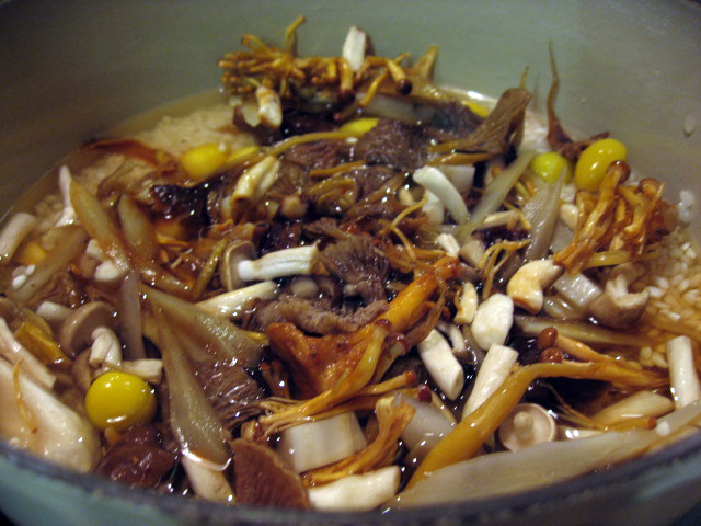 Kinoko okowa (mixed mushrooms with sweet rice)