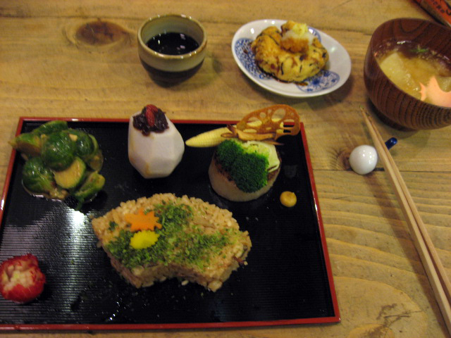 The Embassy of Japan was putting on a shoujin ryouri talk/cooking-demo/tasting called “Zen and the Art of Healthy Eating”, and afterwords Omni Monkey couldn’t stop thanking me for taking him for the next 24 hours. Neither of us had eaten authentic shoujin ryouri for three years, although the sake kind of defeated the meaning of the monk cuisine!