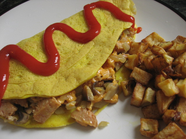 This Isa Chandra Moskowitz’s recipe from Vegan Brunch. This is my go-to for omelet and it also makes great egg for any Japanese “tamago” roll/yaki/sushi recipes!