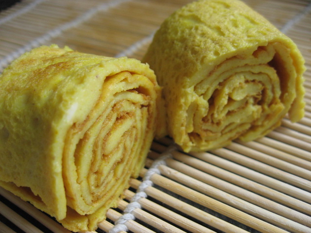 Before you roll it up, brush with soy sauce and a pinch of sugar. Also great with sushi rice with a little nori (toasted seaweed).