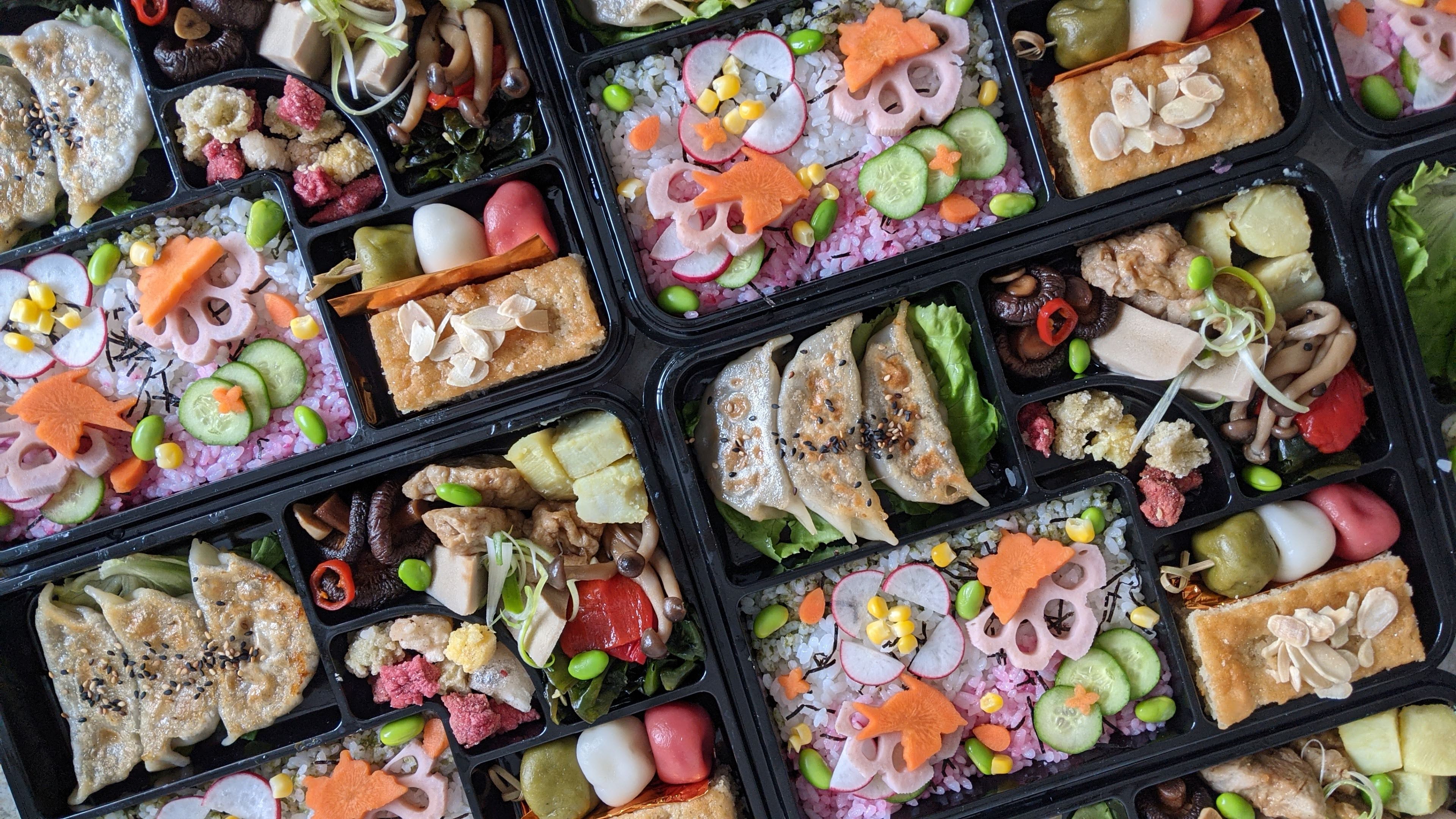 As a vegan company, we try to be as Earth-friendly as possible. Our kitchen is powered by renewable energy, and you will see food being reused in different ways in the same bento For example, a carrot is cut, shaped and pickled, the cutout simmered and the peels used for stock. It is also a Japanese concept called “Mottainai”– the regret at things being discarded needlessly).